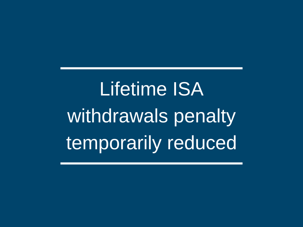 The Government has confirmed that the penalty for early Lifetime ISA withdrawals has been reduced, in response to the Coronavirus pandemic.
