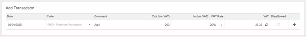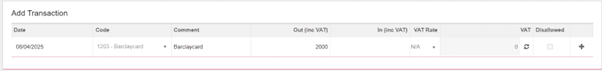 3. Fill in the information for each transaction and add by clicking the “+” button, e.g.: